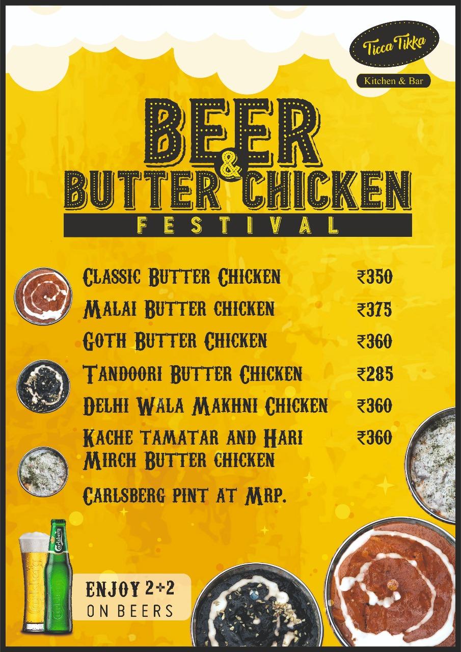 We all know Butter Chicken is the unofficial national non veg delicacy that we all absolutely love! We also know that a chilled beer feels like heaven in this season. Now imagine both together, heavenly right? To serve you a majestic experience, Ticca Tikka is hosting a one of kind Butter Chicken & Beer Festival with unique and exciting variants of Butter Chicken and mind blowing offer on beers.