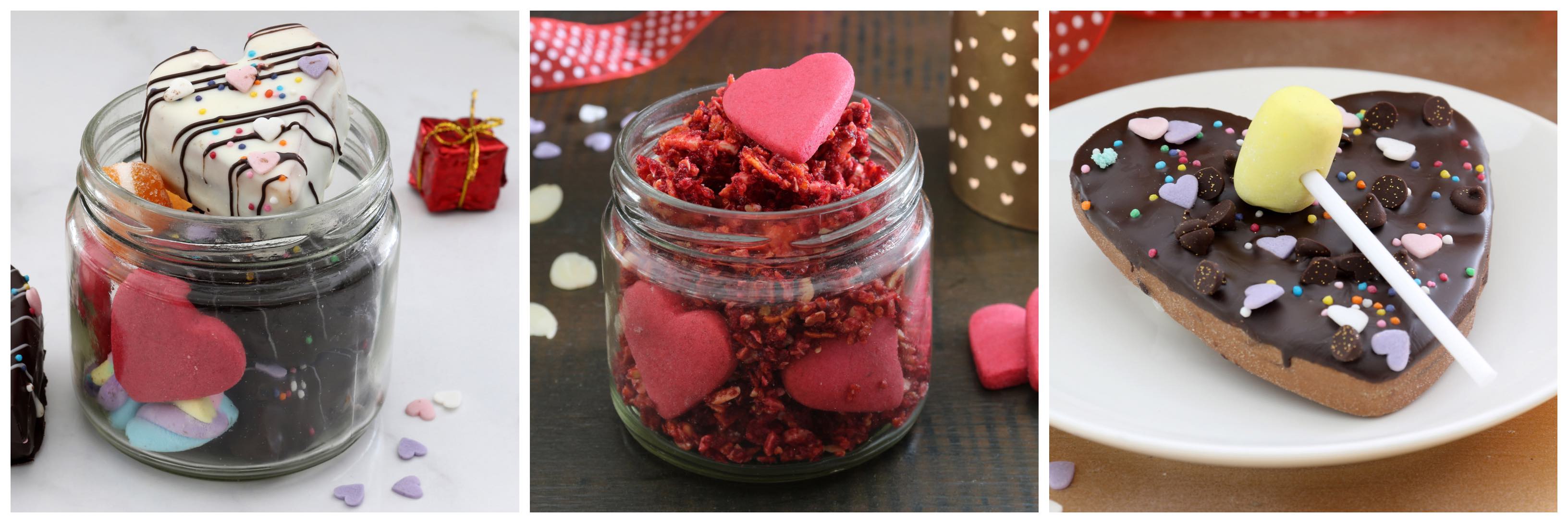 Valentine Hearts in a Jar: A dessert to share, The perfect candy jar…a layer of soft jelly combined with dark smooth brownie engulfed in dark and white chocolate. Find your hidden flavour in jar(orange, mango, raspberry, cherry, strawberry,lemon, many more)