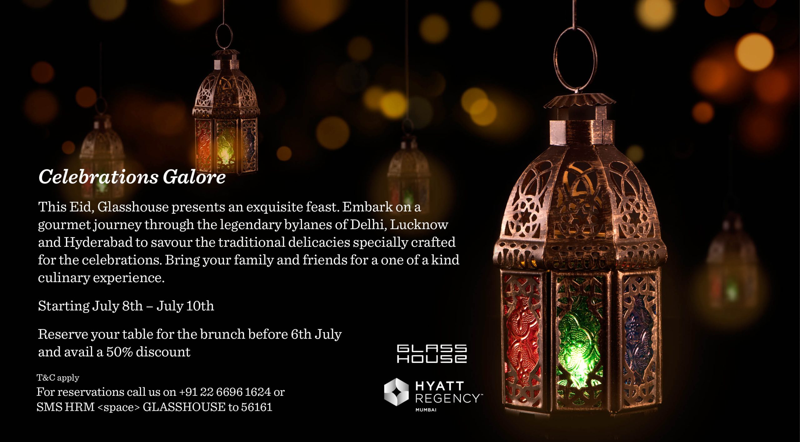 This Eid Glasshouse presents an exquisite feast. Embark on a gourmet journey through the legendary bylanes of Delhi, Lucknow and Hyderabad to savour the traditional delicacies specially crafted for the celebrations. Bring your family and friends for a one of a kind culinary experience.