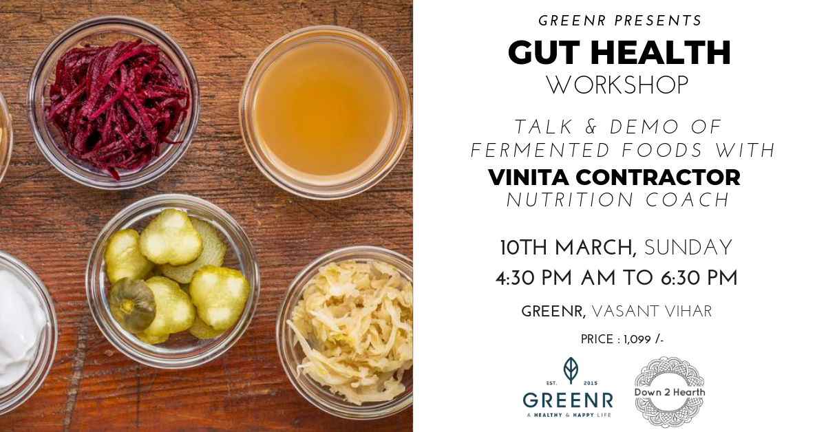 GREENR cafe in collaboration with Mumbai based Nutritionist Coach, Vinita Contractor is excited to host a total wellness and health driven event. GIn this session Vinita will demystify Fermented foods and give you a demo so you can learn to make your own Kefir and Sauerkraut!