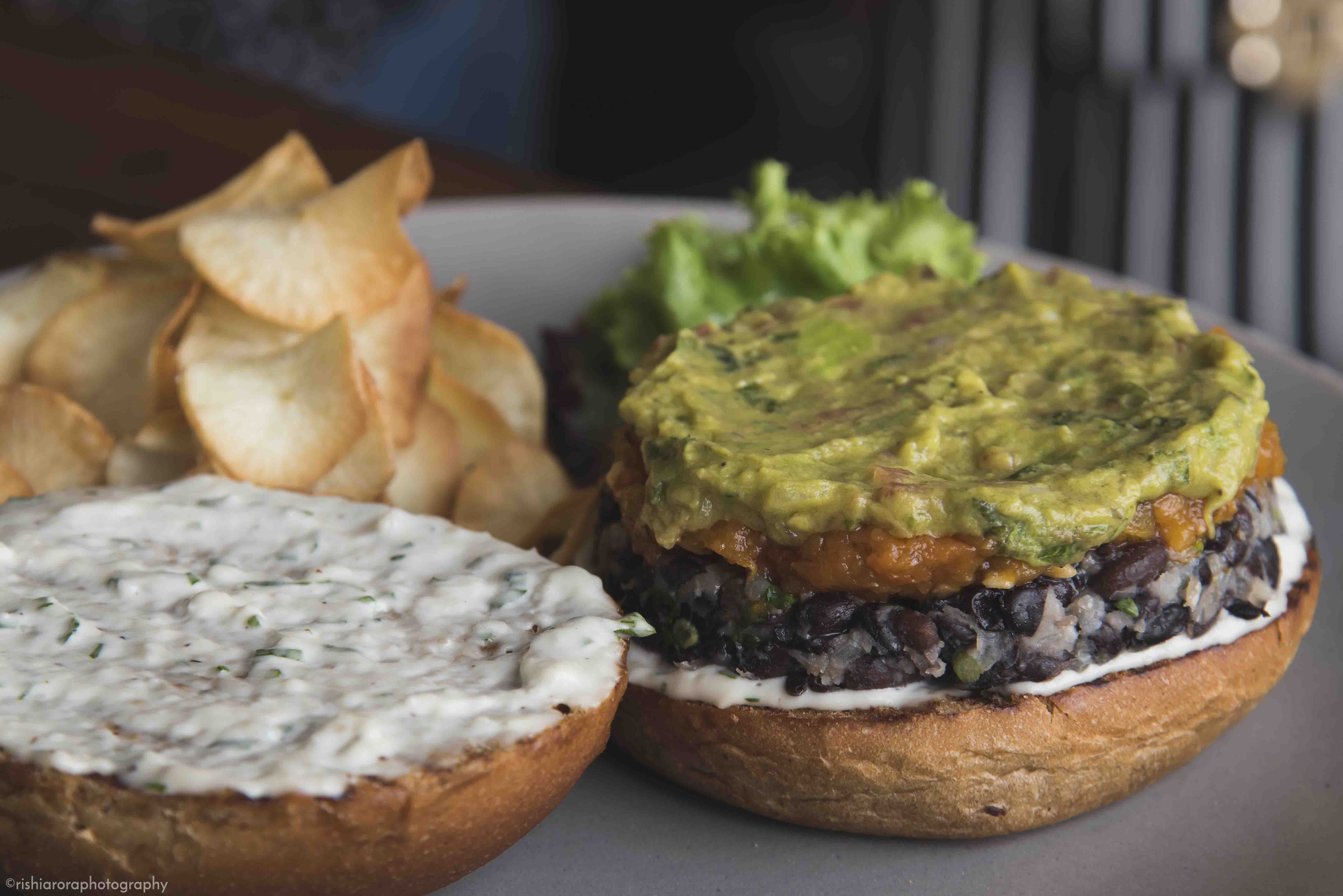 - A Baja Black Bean Burger with Avocado, Guacamole, Chipotle Plant Mayo in a whole-wheat bun from Bien Manger.