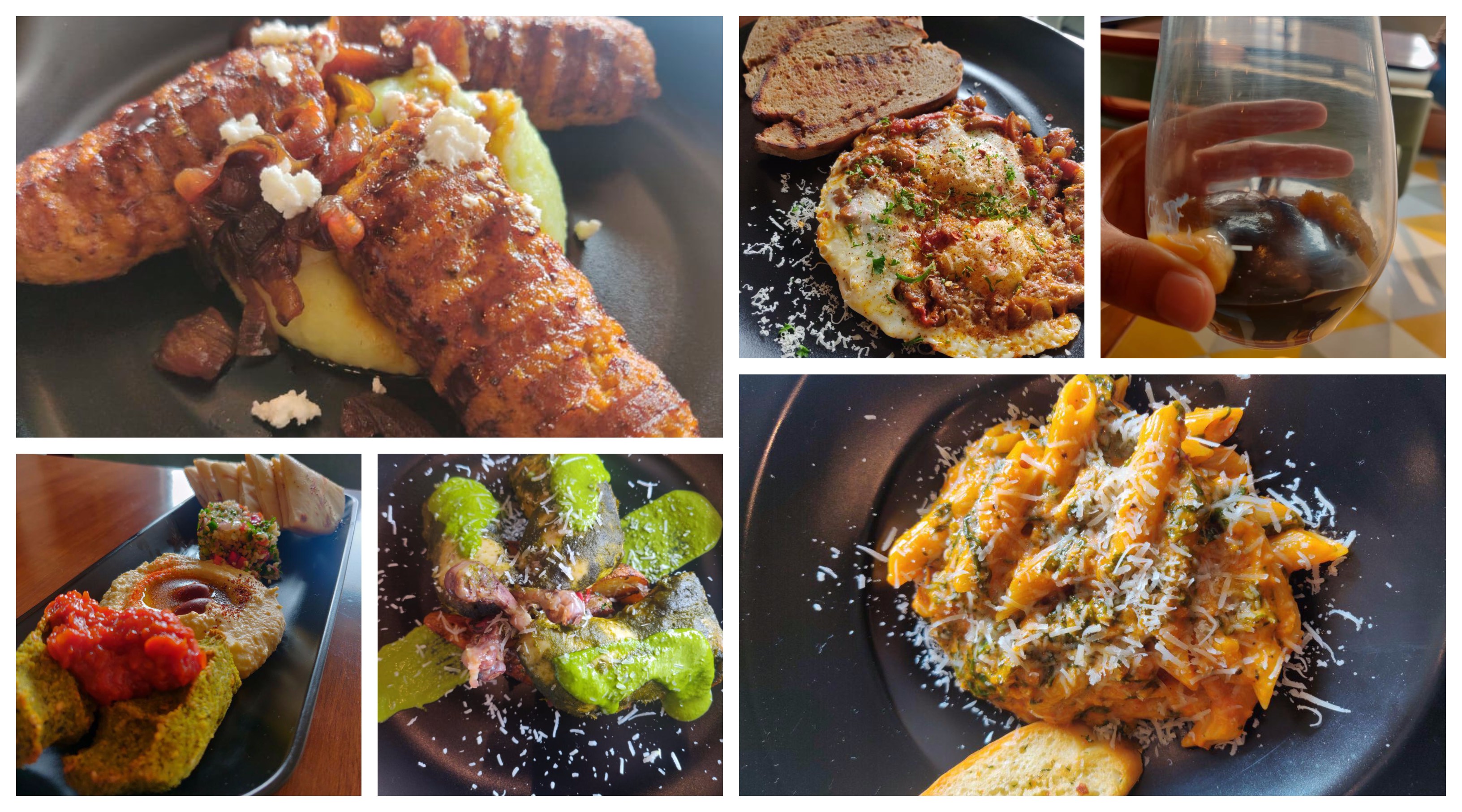 There is a lot of thought that has been put into designing this place – there is a separate all-wood play area for the children, they have made sure that all the furniture present is child-friendly with padded tables and no sharp edges. Coming to the food, it definitely surpassed all my expectations. Every dish on the menu is unique and worth-a-try. They serve Western European & Asian Cuisine. I tried the Peruvian Roast Chicken, Shakshouk with egg & sourdough bread, Spicy Peanut Butter Noodles, Mezze Platter, Spinach pasta, Lamb Kefteh , Brownie Shake, Strawberry Oats Smoothie, Pomegranate & Thyme Spritzer. The meal ended with a decadent Chocolate Glaze Cake and Banoffee! Everything tasted just perfect, all their ingredients are fresh and some are even procured from Uttarakhand and the freshness definitely reflected in the taste.