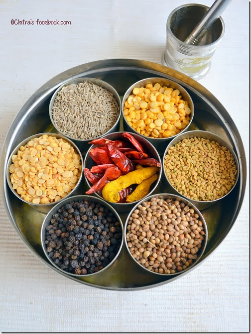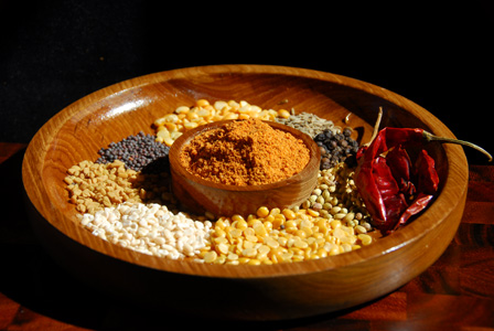 Sāmbhar powder (podi) or masala is a coarse mix made of roasted lentils, dried whole red chilies, fenugreek seeds, coriander seeds, asafetida, curry leaves with regional variants including cumin, black pepper, grated coconut, cinnamon, and various other spices. Use the following recipe to make yourself the most delectable Sāmbhar powder ever.